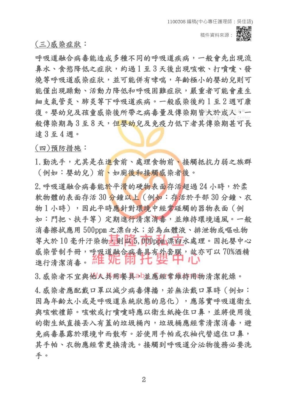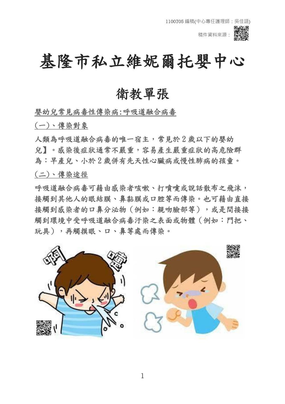110年07月呼吸道融合病毒衛教