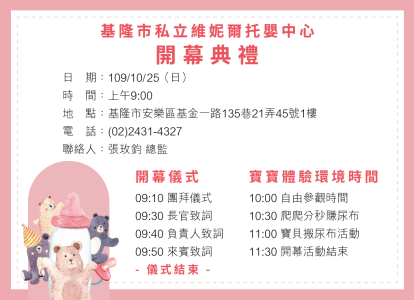 歡迎探索我們的1091025托嬰中心開幕典禮相簿,這是一個特別的時刻,標誌著我們迎來了嶄新的開始。